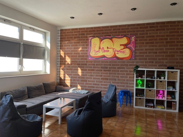 Hier kannst du Freunde treffen, in der Chillecke relaxen, Musik hören oder dich bei einer Runde Tischkicker messen. Auch gibt es etliche Brettspiele, eine Nintendo Switch und verschiedenstes Bastelmaterial sowie eine voll ausgestattete Küche.